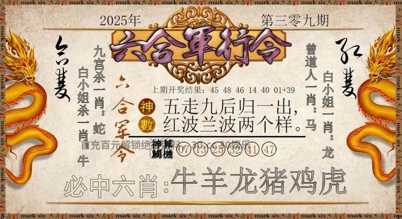 | 309期⑦肖 | 龙蛇羊狗猪马鼠 | 开: 鼠06 |